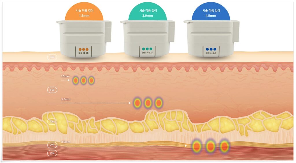 그래서 울쎄라의 에너지는 피부 표면에서 끝나는 게 아니라 진피층을 지나,